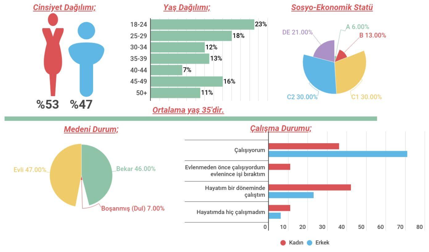 Katılımcıların %72’si toplumdaki en büyük sorunlardan birinin şiddet olduğunu belirtiyor. Kadınların %76’sı en büyük sorun olarak şiddeti belirtirken, bu oran erkeklerde %67 olarak görülüyor. Kadınlara göre, sokaktaki baskı ve taciz (%73) diğer önemli bir sorun olarak öne çıkıyor.Katılımcıların %42’si ya kendilerinin ya da çevrelerindeki birinin şiddete maruz kaldığını dile getiriyor.